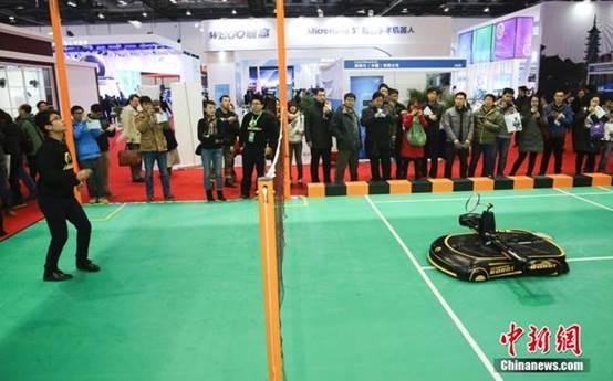 科技日报北京11月24日电 (记者林莉君)一台智能机器人“双手”各握一支羽毛球拍,正与人进行羽毛球单打比赛,机器人左右手轮番上阵,将对手打来的羽毛球一一打回。24日,世界机器人大会上,人机对打的精彩场景吸引了···