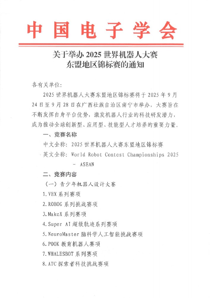 关于举办2025世界机器人大赛东盟地区锦标赛的通知