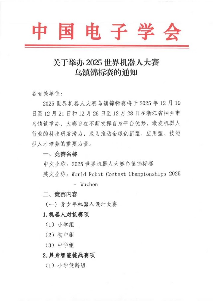 关于举办2025世界机器人大赛乌镇锦标赛的通知