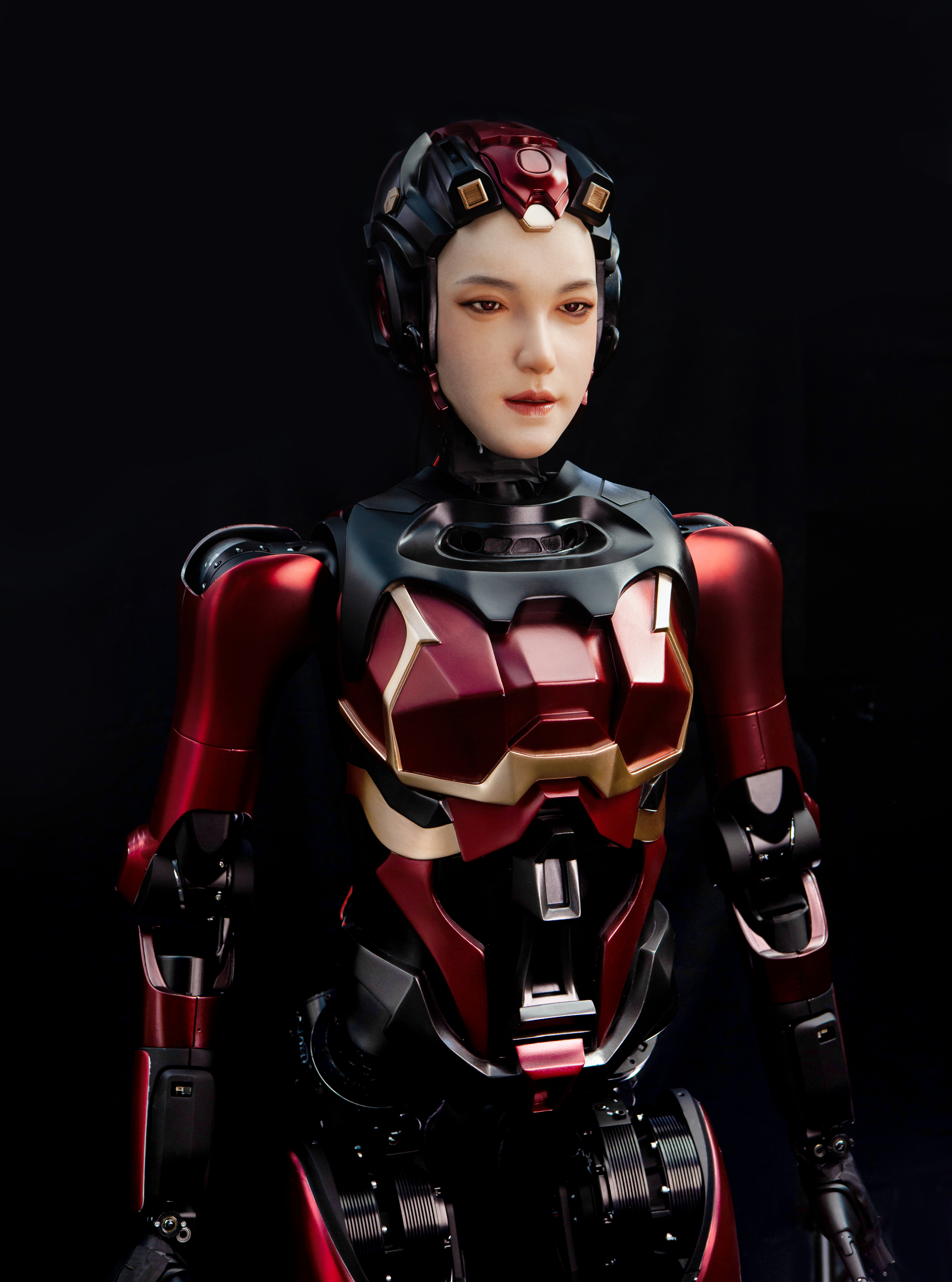 仿生人形机器人夏澜S02,以精密仿生技术为核心,可模仿人类真实的绝大部分表情,使得每一次交互更有温度。据人因工程学原理,身高尺寸比例贴近人类。优化规控算法和运动策略,支持在复杂多变动态环境中自主移动。具备多模态交互能力,能够实现精准的人脸追踪、唇形检测、声源定位。丰富的自然表情、自然动作,让机器人实时对话更有生命力、亲和力。支持精准营销话术、业务咨询与引导、展项讲解,让信息传递更加高效直观。