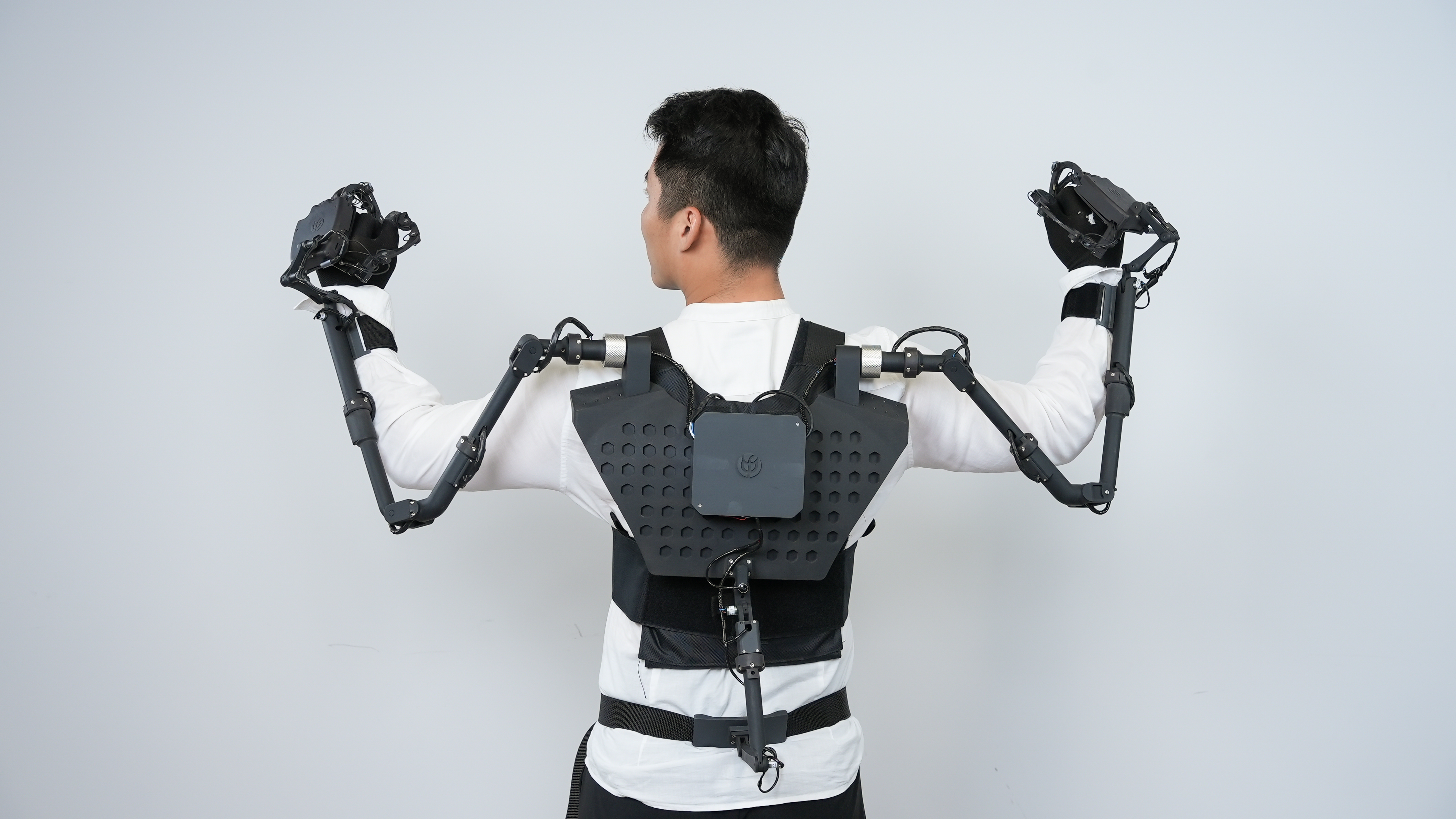 DexCap数据采集系统是一款高精度外骨骼遥操作平台,系统采用轻量化异构外骨骼架构(<2kg),集成高密度传感器网络(双臂各9自由度、双手各21自由度、腰部5自由度),实现毫米级动作捕捉与千赫级响应(>1000Hz)。支持多模态交互,包括五级触觉反馈和毫秒级低延迟通信,确保1:1动作映射。模块化设计兼容主流机械臂协议及Windows/Linux系统,适用于特殊环境远程操控、VR交互及科研开发。