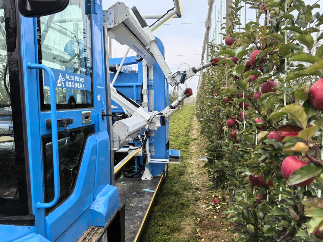 针对果园智能化高效采收需要,国内首创“采-收-运”一体式果园多臂采摘机器人,重点突破自然环境熟果视觉识别、刚柔耦合采摘臂设计、多臂协同作业任务规划等关键技术,有效提高了采摘机器人信息感知、柔顺操作与高效作业性能。 适用场景:矮化密植标准苹果园