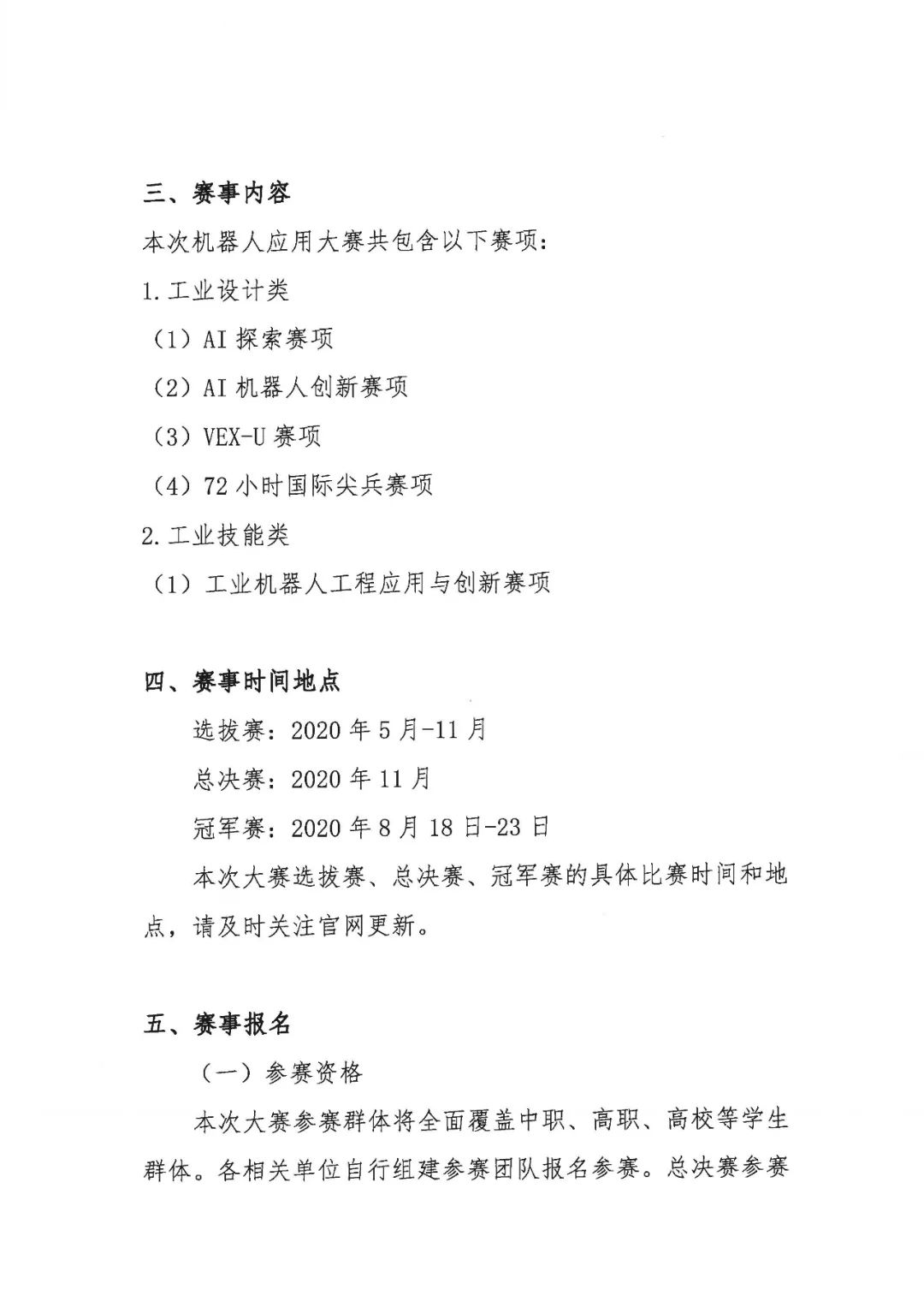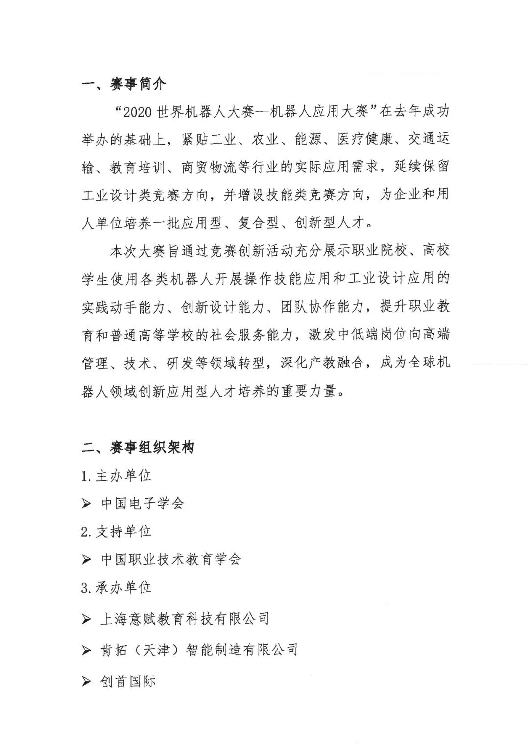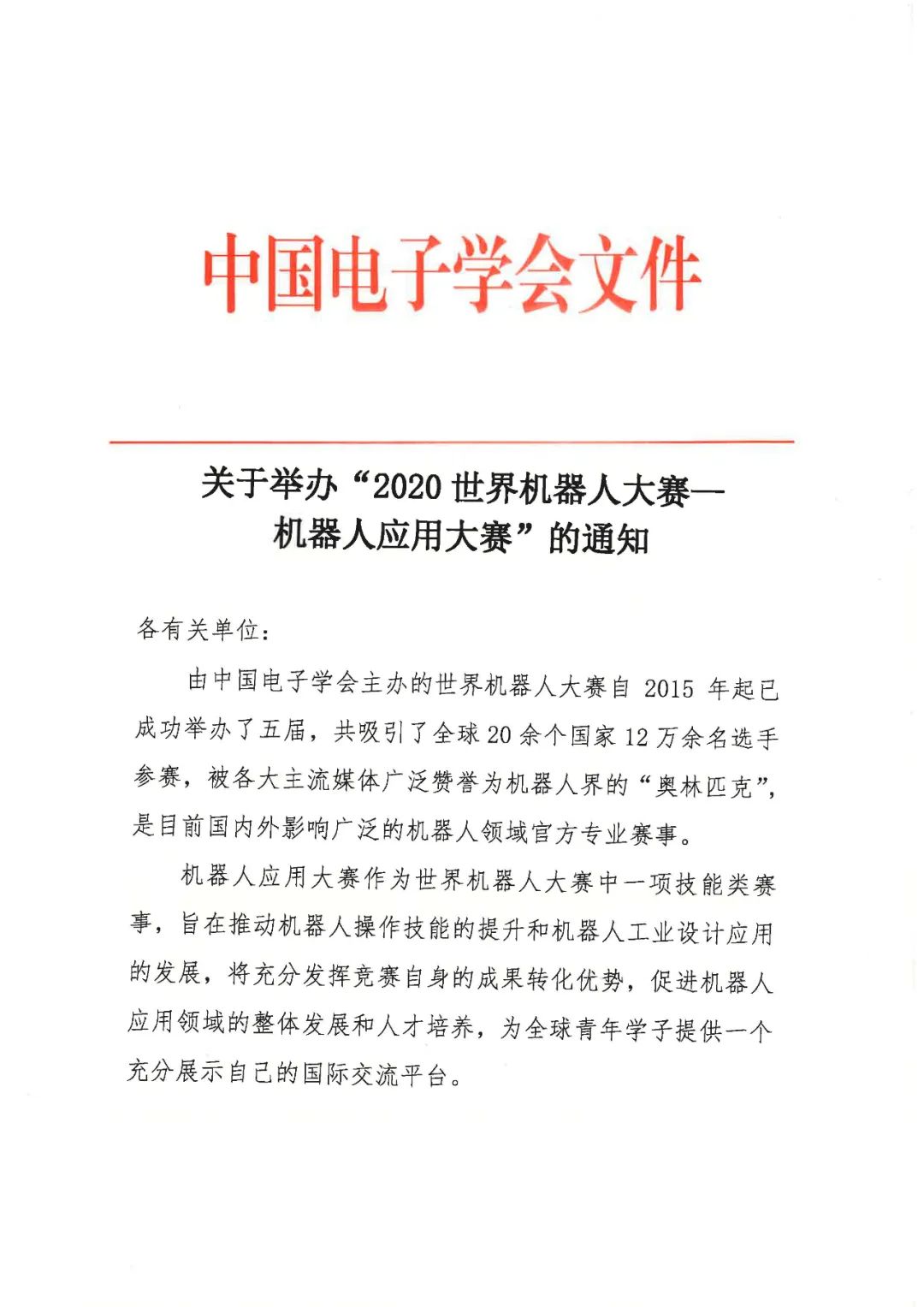 关于举办“2020世界机器人大赛——机器人应用大赛”的通知