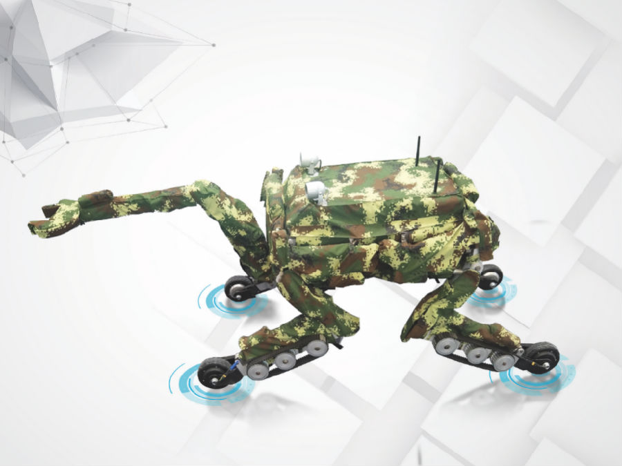 这款机器人具备全地形、6自由度运动能力,对路面适应性强,与环境的共融性好,即使在复杂路面条件下,姿态仍可以在一定程度上保持动态稳定;它还可以自主跟随、避障,人机交互性强;主体部分可以大幅升降,来适应限高或限宽的路面环境;可扩展性强——其承载平台具有充分的上部和下部空间,可以安装多种操作附件:例如将移动单元更换为磁吸附式,它便可以在磁性表面吸附行走,完成探伤、焊接、机械加工等任务;如果移动单元更换为壁面吸附式,则该机器人可以做墙面操作机器人。